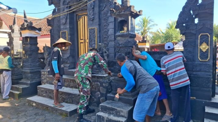 Merajut Kebersamaan di Desa Siliragung: Satgas TMMD ke-125 dan Warga Bersatu Mengecat Pura, Simbol Kuat Toleransi Beragama