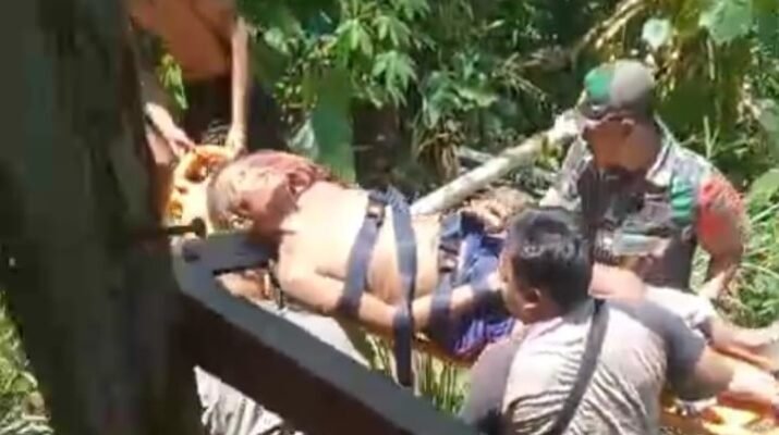 Songgon – Anggota Bintara Pembina Desa (Babinsa) Koramil 0825/20 Songgon menunjukkan responsivitas dan kepedulian tinggi terhadap keselamatan warga dengan melaksanakan evakuasi darurat terhadap seorang warga yang jatuh dari tebing Sungai Binau, Jumat (3/10/2025) sekitar pukul 11.00 WIB.