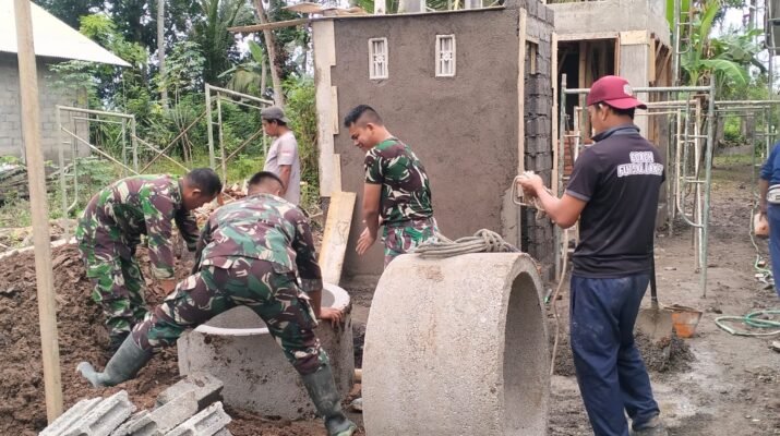 Banyuwangi, Dalam upaya percepatan pembangunan infrastruktur dan peningkatan kesejahteraan masyarakat, Babinsa (Bintara Pembina Desa) Siliragung dari Posramil 0825/24, Sertu Sutriyadi, bersama tim Satuan Tugas (Satgas) TNI Manunggal Membangun Desa (TMMD) ke-125, mengerahkan seluruh tenaga dan sumber daya untuk menyelesaikan pembangunan fasilitas Mandi, Cuci, Kakus (MCK) di Desa Siliragung, Kecamatan Siliragung Minggu, 03/08/2025.