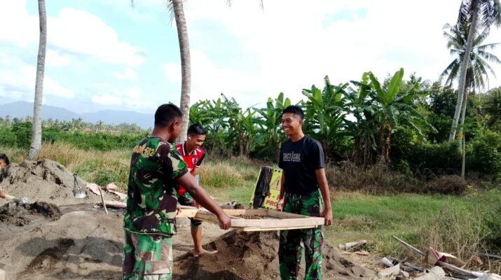 Kegiatan ini dilakukan di tengah hamparan persawahan yang menjadi sumber penghidupan utama warga. Dengan sistem kerja gotong royong, prajurit TNI bersama warga saling membantu mulai dari pengadukan adonan semen, pemasangan batu, hingga perataan saluran. Semangat kebersamaan terlihat jelas di setiap langkah pekerjaan.