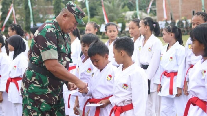 Banyuwangi – Inspektur Daerah Militer (Irdam) V/Brawijaya Brigjen TNI Ramli, SE, memberikan apresiasi kepada para atlet karate binaan Kodim 0825/Banyuwangi pada Kamis (21/8/2025). Pemberian apresiasi tersebut berlangsung usai rangkaian kegiatan penutupan TMMD ke-125 di Kecamatan Siliragung, Kabupaten Banyuwangi.