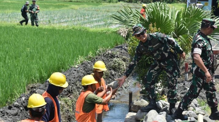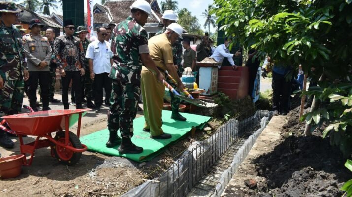 DANDIM 0818/MALANG-BATU LETKOL CZI BAYU NUGROHO LETAKKAN BATU PERTAMA PEMBUATAN DRAINASE TMMD KE-126
