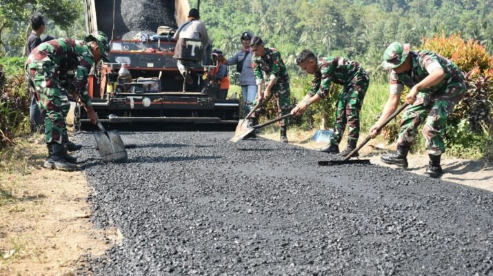 Dalam rangka mendukung percepatan pembangunan infrastruktur desa, anggota Satgas TNI Manunggal Membangun Desa (TMMD) ke-126 Kodim 0818/Malang Batu melaksanakan pengaspalan jalan di Dusun Sukomaju,
