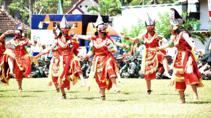 Tari Cucuk Lampah dan Bapang Sambut Kedatangan Pejabat dalam Pembukaan TMMD ke-126 Kodim 0818/Malang-Batu