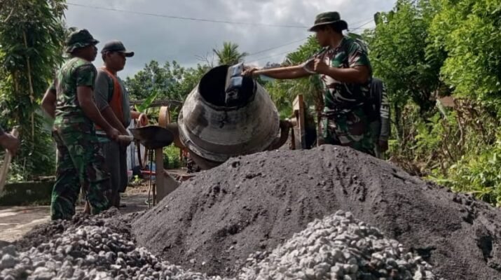 Di tengah tingginya intensitas hujan yang melanda wilayah Kecamatan Ampelgading, Kabupaten Malang, Satgas TNI Manunggal Membangun Desa (TMMD) ke-126 Kodim 0818/Malang-Batu terus menunjukkan semangat