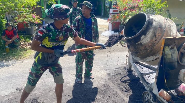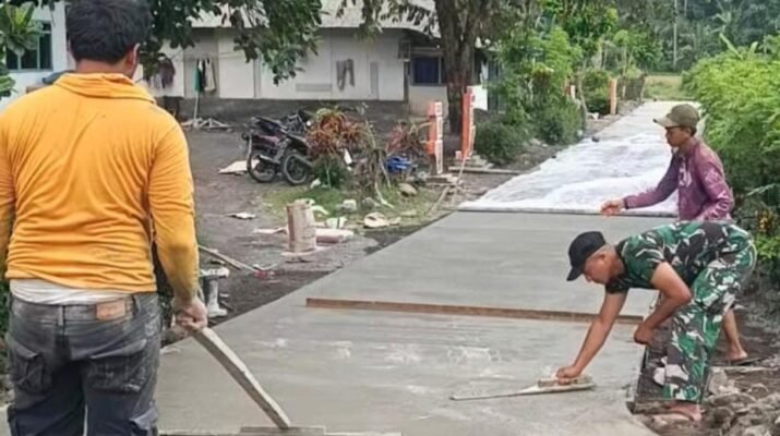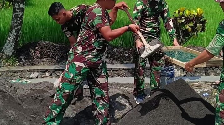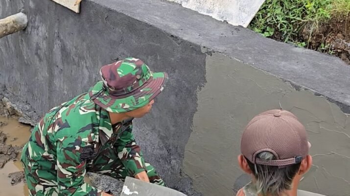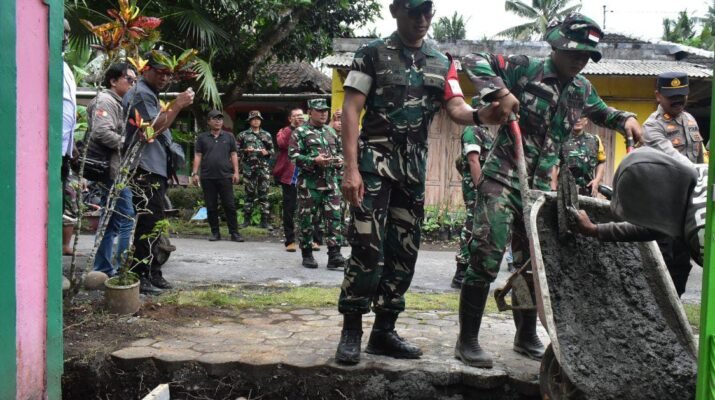Ampelgading – Semangat gotong royong antara Satgas TMMD ke-126 dan masyarakat Dusun Krajan 1A terus mengalir dalam pengerjaan rabat beton yang menjadi salah satu
