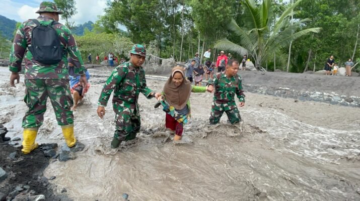 Bahu-Membahu dengan Warga, Personel Kodim Lumajang Ringankan Dampak Lahar Dingin Semeru