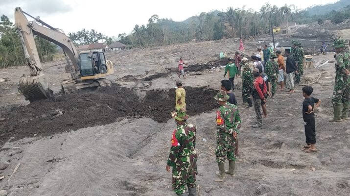 Lumajang — Upaya percepatan penanganan pascaerupsi Gunung Semeru terus dilakukan oleh personel gabungan dari Kodim 0821/Lumajang, Yonif 527/BY, BPBD, serta relawan. Pada Selasa (2/12/2025),