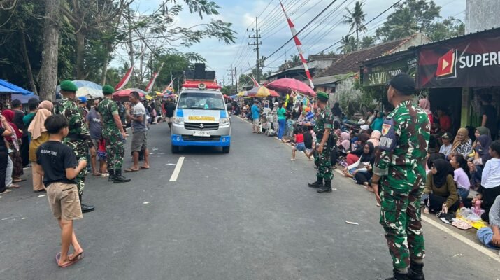 Siliragung – Karnaval peringatan HUT RI ke-80 di Kecamatan Siliragung berlangsung meriah dengan antusiasme tinggi dari masyarakat. Untuk menjaga jalannya acara tetap aman dan tertib, pasukan Satgas TMMD ke-125 Kodim 0825/Banyuwangi ikut diterjunkan membantu aparat setempat dalam pengamanan jalur dan pengaturan massa.