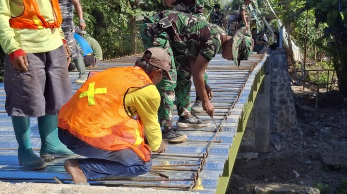 Banyuwangi – Pembangunan sasaran fisik berupa jembatan dalam program TNI Manunggal Membangun Desa (TMMD) ke-125 Kodim 0825/Banyuwangi mulai menunjukkan hasil yang signifikan. Proyek pembangunan yang berlokasi di Kecamatan Siliragung ini telah memasuki tahap lanjutan, dengan struktur jembatan yang mulai tampak jelas. Kegiatan ini merupakan salah satu upaya nyata TNI dalam mempercepat pembangunan infrastruktur di wilayah pedesaan.
