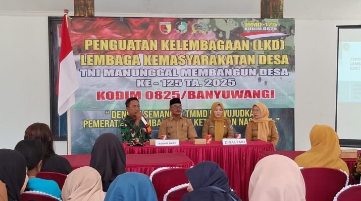 Banyuwangi, 6 Agustus 2025 – Program TNI Manunggal Membangun Desa (TMMD) ke-125 Kodim 0825/Banyuwangi terus menggencarkan kegiatan non-fisik sebagai bentuk penguatan kapasitas masyarakat desa. Salah satu kegiatan yang dilaksanakan yaitu penyuluhan penguatan kelembagaan LKD (Lembaga Kemasyarakatan Desa) yang digelar di salah satu desa sasaran TMMD.
