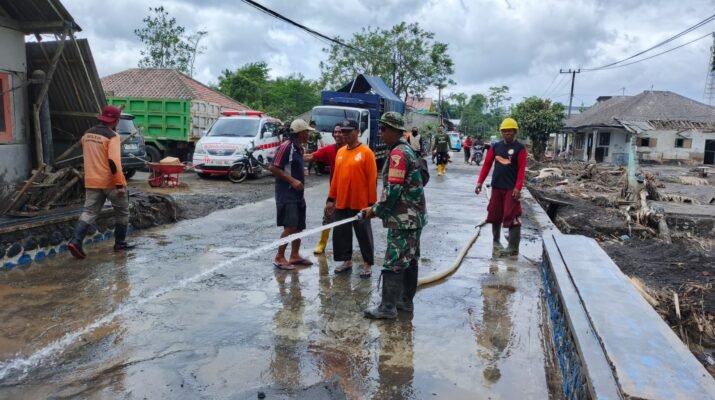 Lumajang — Upaya pemulihan pascabencana di wilayah terdampak terus dilakukan secara intensif. Dalam aksi gotong royong yang berlangsung pada Senin (1/12/2025), personel TNI bersama relawan dan warga bahu-membahu membersihkan jalan utama yang sebelumnya tertutup lumpur tebal akibat banjir lahar dingin. Kegiatan tersebut dipimpin oleh tertua di lapangan, Pelda Said, yang memastikan seluruh proses berjalan aman, cepat, dan terkoordinasi.