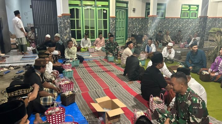 Banyuwangi – Dalam upaya mempererat hubungan antara TNI dan masyarakat, personel Satgas TMMD ke-125 Tahun Anggaran 2025 Kodim 0825/Banyuwangi bersama Tim Pembinaan Mental (Bintal) Korem 083/Baladhika Jaya turut menghadiri kegiatan Haul 1 Almarhum Bapak H. Mufid yang dilaksanakan di Dusun Krajan, Desa Siliragung, Kecamatan Siliragung, Selasa malam (05/08/2025).