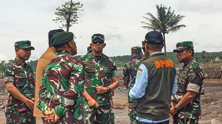 Lumajang, Komitmen TNI dalam hadir untuk rakyat kembali tampak saat Pangdam V/Brawijaya, Mayjen TNI Rudi Saladin, turun langsung meninjau kondisi terkini wilayah terdampak erupsi