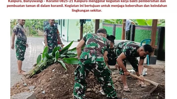 Kalipuro, Banyuwangi – Koramil 0825-21 Kalipuro menggelar kegiatan kerja bakti pembersihan dan pembuatan taman di dalam koramil. Kegiatan ini bertujuan untuk menjaga kebersihan dan