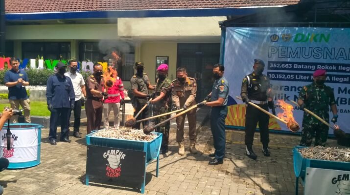 Kalipuro, Banyuwangi – Koramil 0825-21 Kalipuro melalui Kapten Kav I Made Slamet Santosa, Danramil Kalipuro, menghadiri kegiatan pemusnahan barang milik negara di Halaman KPPBC